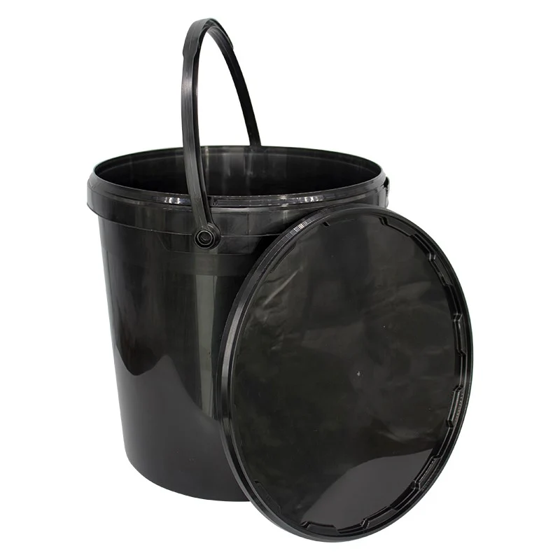 En robust, allsidig plastbøtte med lokk og bærehåndtak – perfekt for hydroponikk, lagring eller blanding av væsker og materialer.