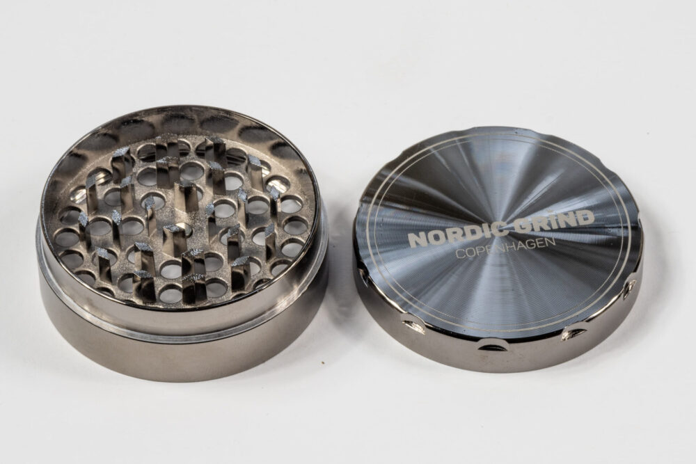 Lekker danskprodusert kvalitetsgrinder fra Danske Nordic Grind. Diameter: 56mm Høyde: 43mm Vekt: 170g Materiale: Sink-Nikkel legering