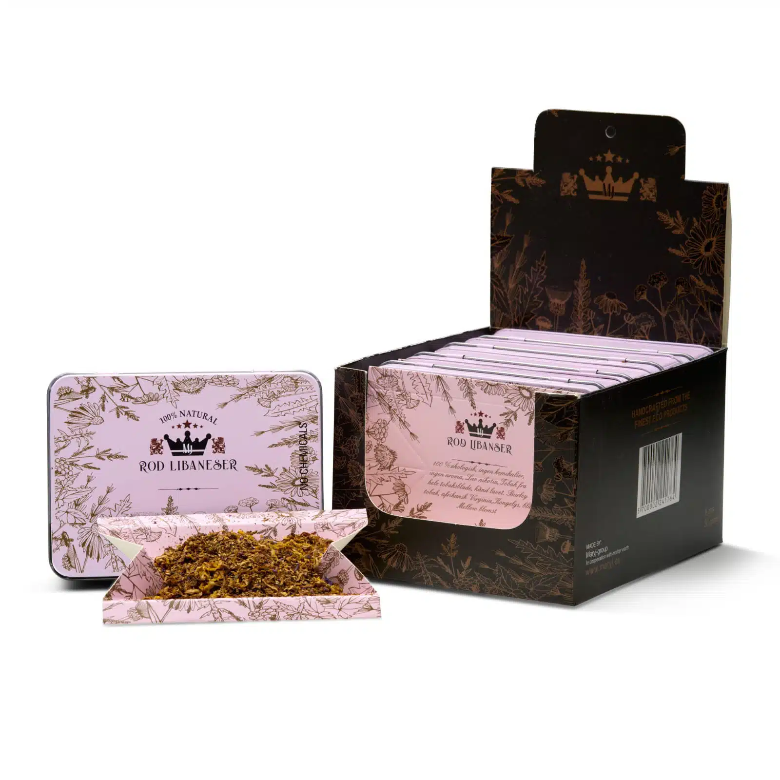 MJ Org: Rød Libaneser: De fineste blader og blomster av økologiske delikatesser, alt fra Arikans Virginia, som har naturlig karamell-/nøttesmak. En dansende duett med blant annet orientalske hele blader til verbascum-blomst og blå malveblomst.