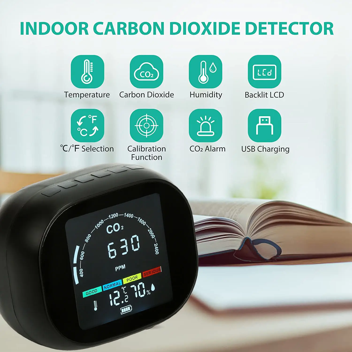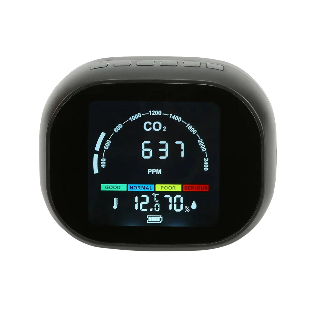 Måleren måler i god, normal, dårlig og kritisk luftkvalitet. Hvis den måler et konsentrasjonsnivå over dens grenseverdi, kan den alarmere både visuelt og hørbart.