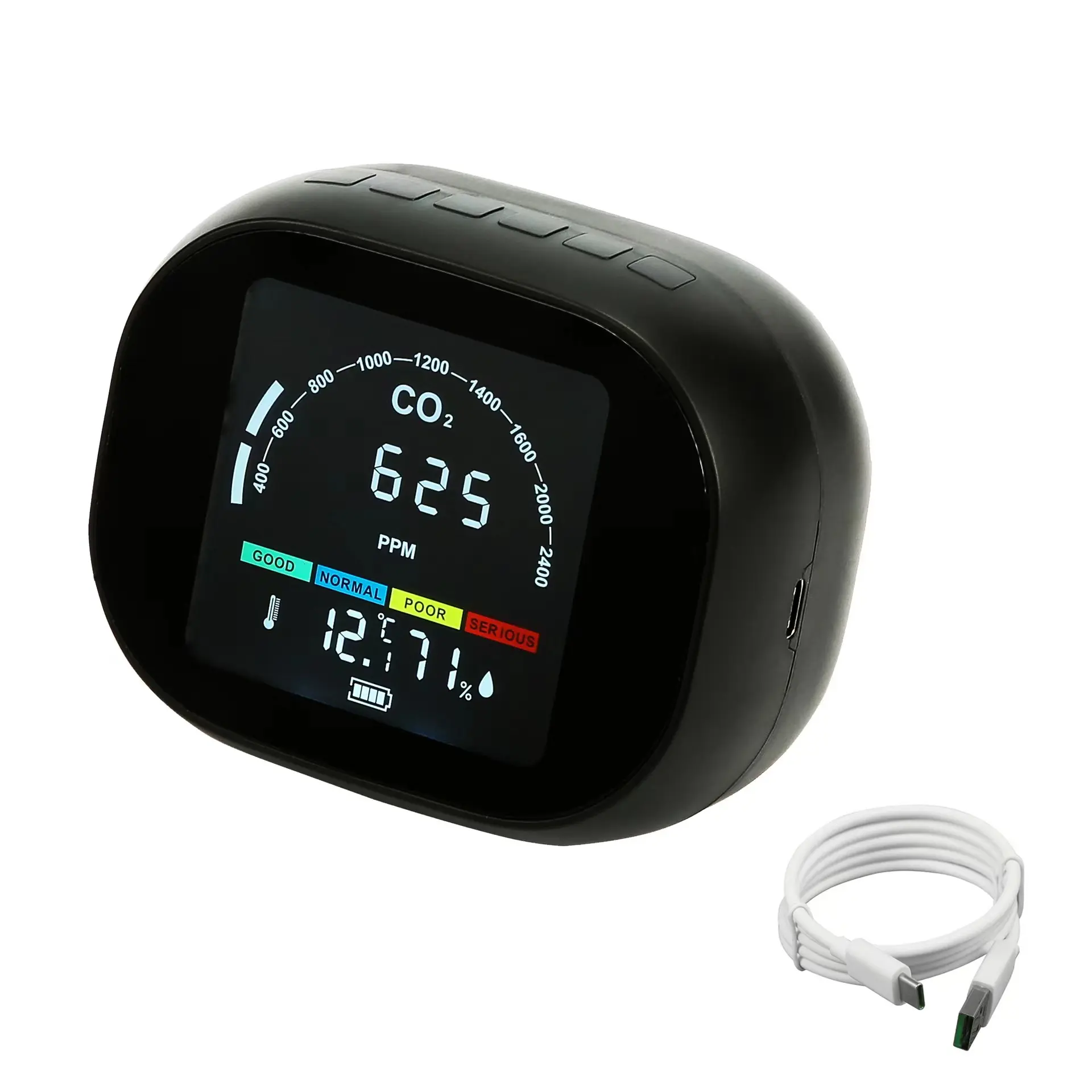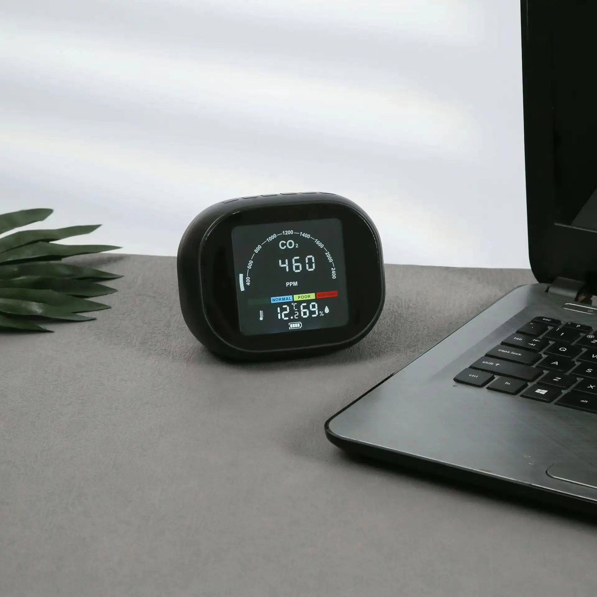 Smart CO2-måler med visuelt og akustisk alarmsignal, og med trafikklys-display for enkel avlesning. I tillegg kan du velge å bruke strømforsyningen eller det trådløse batteriet.