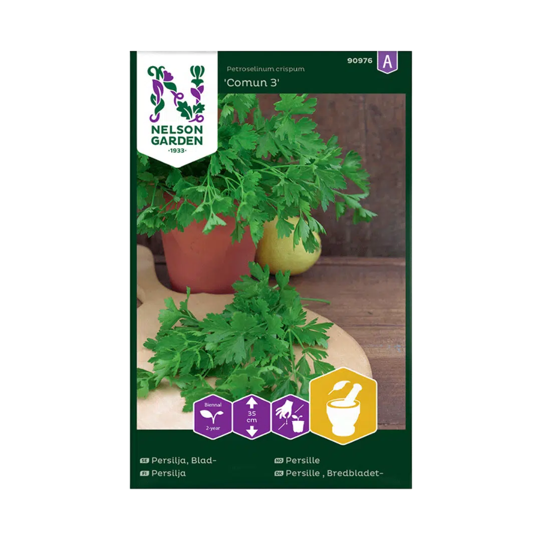 Bredbladet persille er en uvurderlig urt i ethvert kjøkken og hver hage, kjent for sin robuste smak og fløyelsmyke blader. I motsetning til krusete persille, som ofte brukes som pynt, har bredbladet persille en intens smak, noe som gjør den ideell som ingrediens i retter fra supper til sauser. Den er spesielt populær i middelhavsretter. Med våre frø kan du forvente en rik høst som strekker seg over 6–9 meter med frodig vekst. Bredbladet persille trives best i solrike til halvskyggefulle områder med godt drenert jord. Den kan dyrkes både i drivhus og utendørs, og dens kompakte vekst gjør den perfekt til urtebed eller til og med potter.