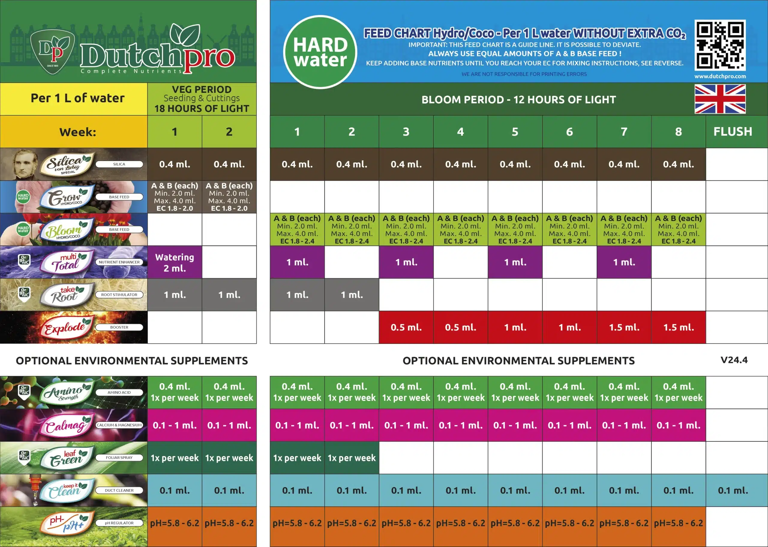 - Inkluderer en komplett, brukervennlig Dutch Pro fôrings-/gjødslings-tabell, slik at du ikke trenger å huske når du skal bruke hva!