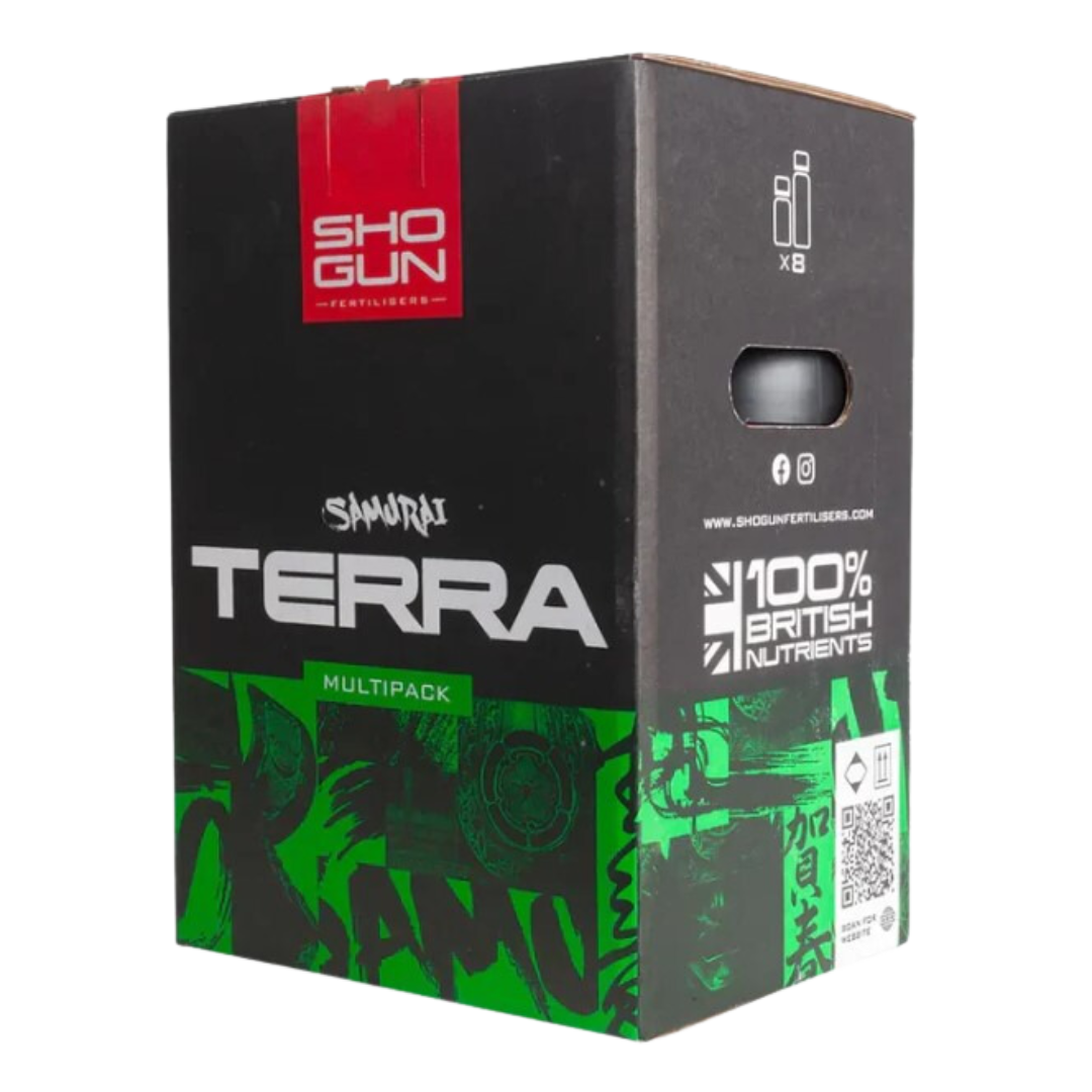 Shogun Terra Multipack er fylt med vår fantastiske Samurai Terra Grow og Terra Bloom gjødsel sammen med et fantastisk utvalg av tilsetningsstoffer: Start, Katana Roots, CalMag, PK Warrior 9/18, Sumo Active Boost og Dragon Force.