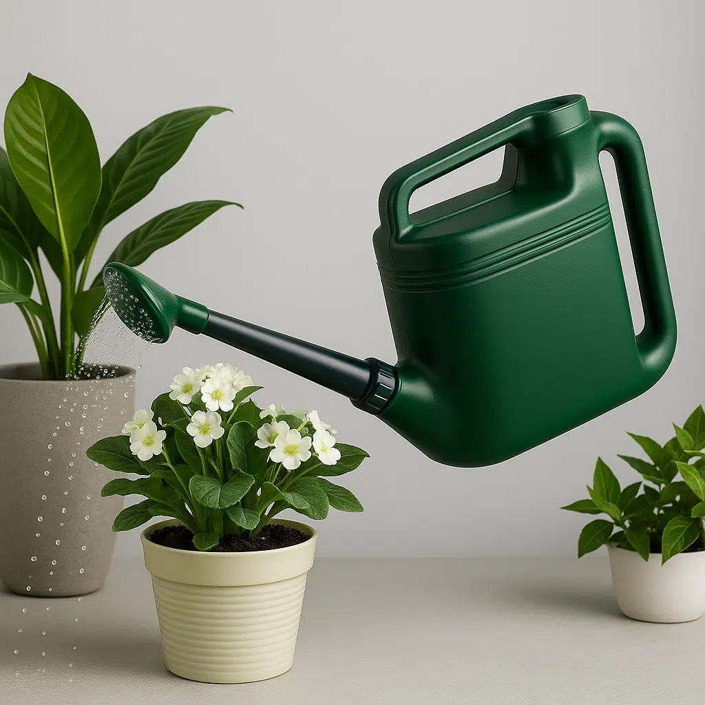 - 🔵 Ergonomisk tohåndsgrep: Topp- og sidehåndtak for bedre kontroll ved påfylling og vanning
